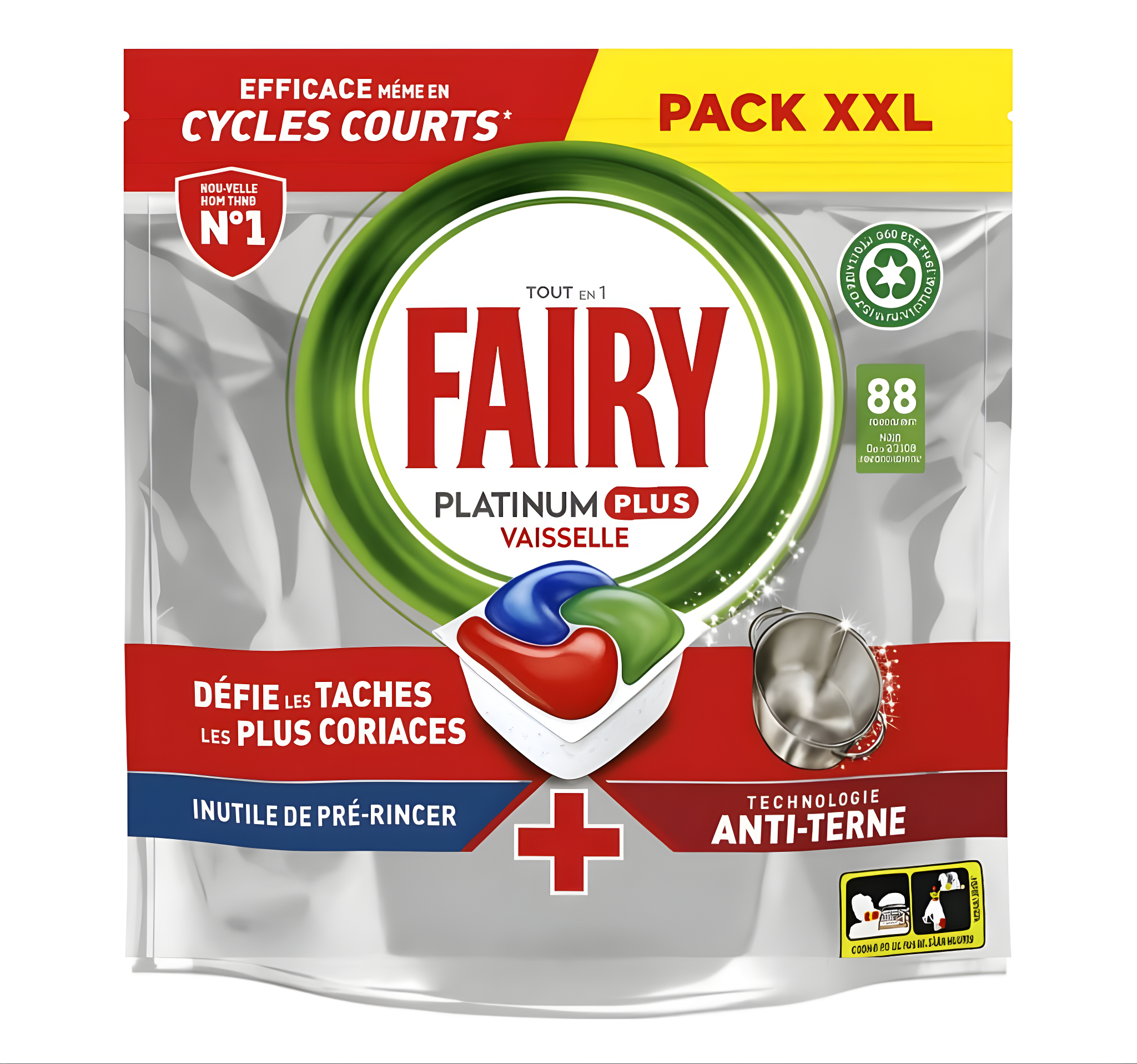 قرص ماشین ظرفشویی Fairy Platinum Plus ساخت فرانسه 🇫🇷 یکی از قویترین و پیشرفتهترین محصولات شستوشوی ظروف در جهان است که با فرمول ویژهی خود، درخشش و پاکیزگی بینقص را به آشپزخانهی شما هدیه میدهد. ✨ این قرص حرفهای با ترکیب سهگانهی قدرتمند خود، حتی سختترین چربیها و لکههای خشکشده را از بین میبرد، بدون آنکه نیاز به شستوشوی اولیه باشد. 💪 فناوری Anti-Terne آن، از کدر شدن ظروف شیشهای و استیل جلوگیری کرده و درخششی خیرهکننده به جا میگذارد. 🍽️از دیگر ویژگیهای جذاب این محصول، عملکرد مؤثر آن حتی در سیکلهای کوتاه شستوشو است که باعث صرفهجویی در زمان و انرژی میشود. ⚡ هر قرص Fairy Platinum Plus حاوی مواد فعال برای شستوشو، براقکنندگی و جلادهندگی است تا ظروف شما نهتنها تمیز، بلکه همچون نو بدرخشند. 🌟با انتخاب فِیری، تمیزی، درخشش و عطر دلانگیز را همزمان تجربه کنید — چون هر شستوشو با Fairy، جادوی واقعی تمیزی است! 🧼💚