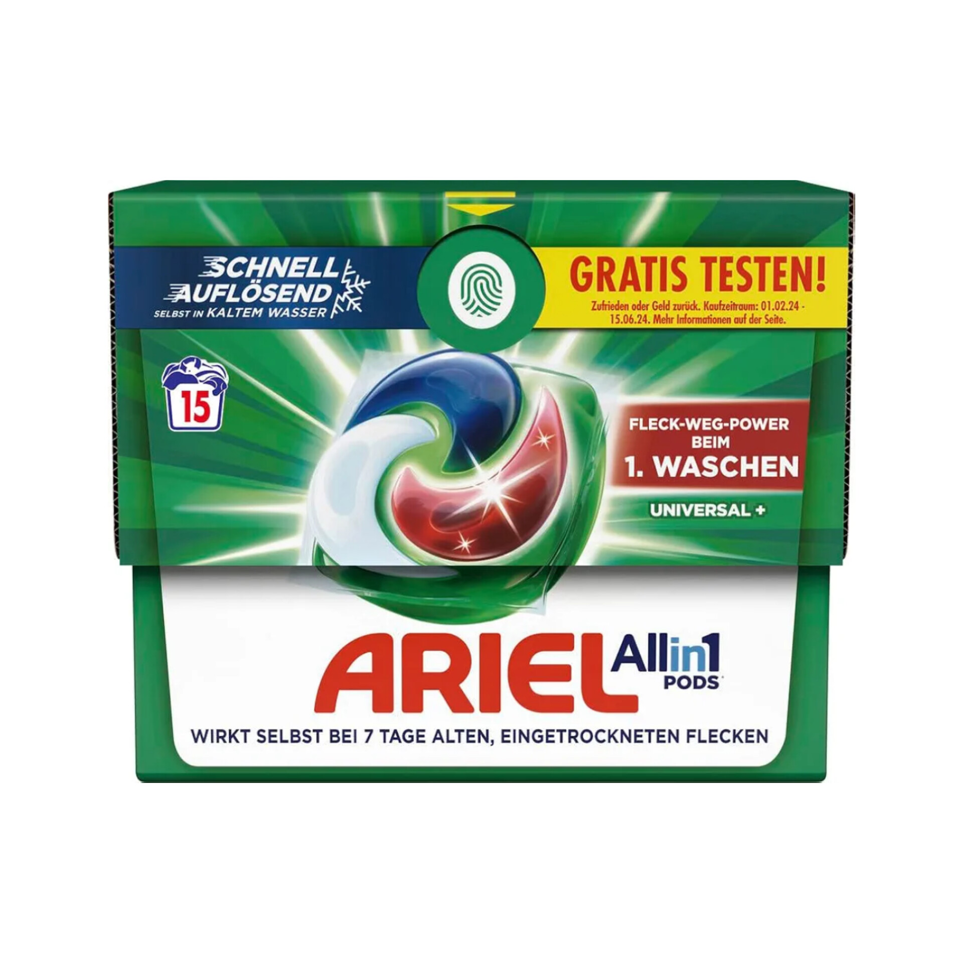 کپسول لباسشویی Ariel All in 1 Pods Universal+ نسل جدیدی از شویندههای فشرده و فوقالعاده قدرتمند است که تمیزی بینقص را تنها در اولین شستوشو برایتان به ارمغان میآورد ✨ این محصول با فرمول چندمنظوره خود، حتی لکههای خشک و قدیمی تا ۷ روزه را از بین میبرد و لباسها را درخشان، نرم و با عطری تازه و دلانگیز باقی میگذارد 👕🌿 کپسولهای یونیورسال آریل بهسرعت در آب سرد حل میشوند، بدون باقیماندن هیچگونه اثری از پودر یا مایع، و مناسب برای تمام رنگها و انواع پارچه هستند. انتخابی هوشمندانه برای شستوشویی آسان، تمیز و بیدغدغه 💧🇩🇪