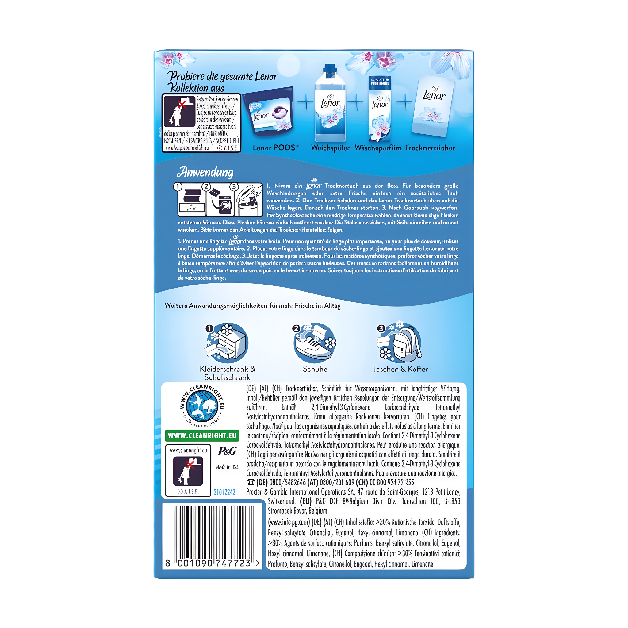 برگههای خشککن Lenor مدل Spring Awakening با 34 عدد سفارش فرانسه در هر بسته، تجربهای تازه از شستشو را به شما هدیه میدهد. این محصول، لباس های شما را با نرمی ابریشمی و رایحه دلنشین بهاری احاطه میکند این برگههای جادویی نهتنها عملکرد خشککن لباس شما را بهبود میبخشند، بلکه بویی دلپذیر و حس تازگی به هر بار شستشو اضافه میکنند. علاوه بر این میتوانید برای خوشبو کردن فضا های کوچک مثل کشویی کمد ٬ کیف ٬ کفش و غیره از این محصول استفاده کنید و فقط یک بار استفاده کافی است تا عاشق این برگههای جادویی شوید! هر بار که لباس هایتان را میپوشید، حس تازگی و آرامش شما را فرا خواهد گرفت با Lenor، لباس هایتان همیشه تازه، نرم و خوشبو خواهند بود.