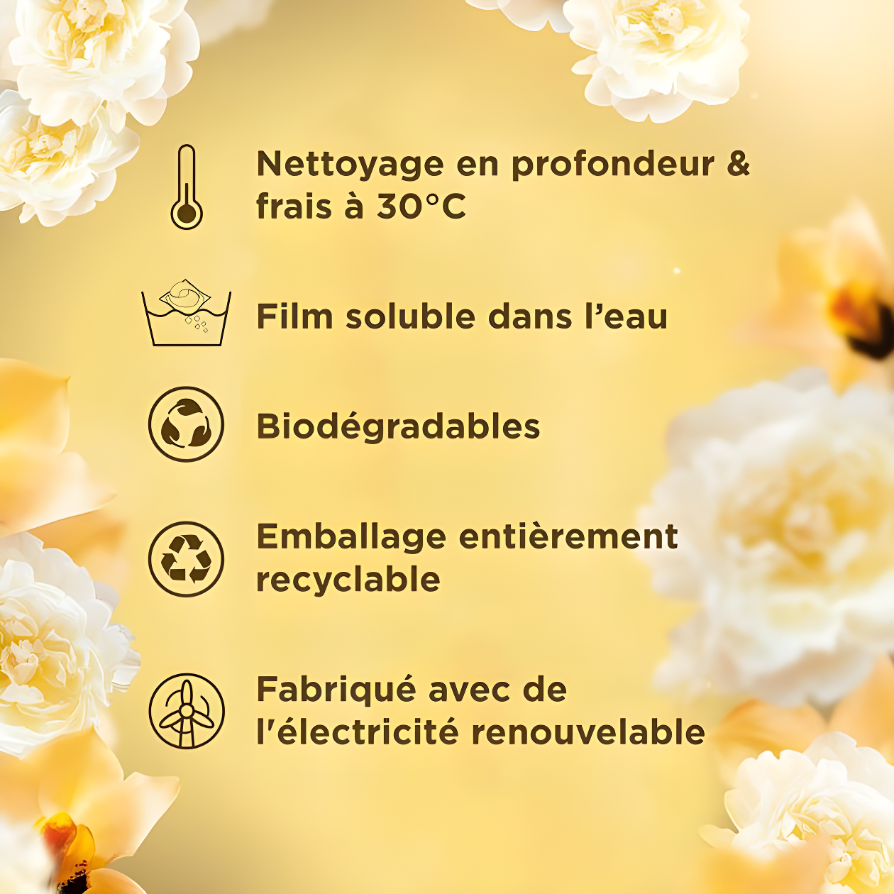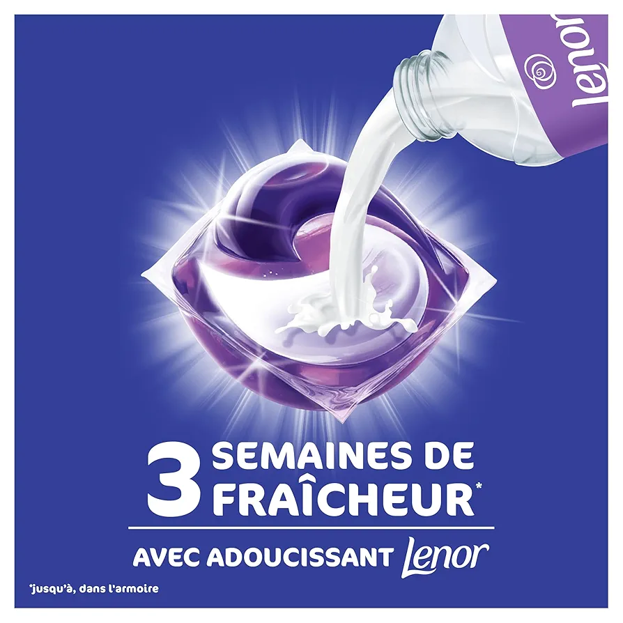 🌺 فرمول دوکاره (2in1): ترکیب شوینده قدرتمند با نرمکننده Lenor برای تمیزی و نرمی فوقالعاده.