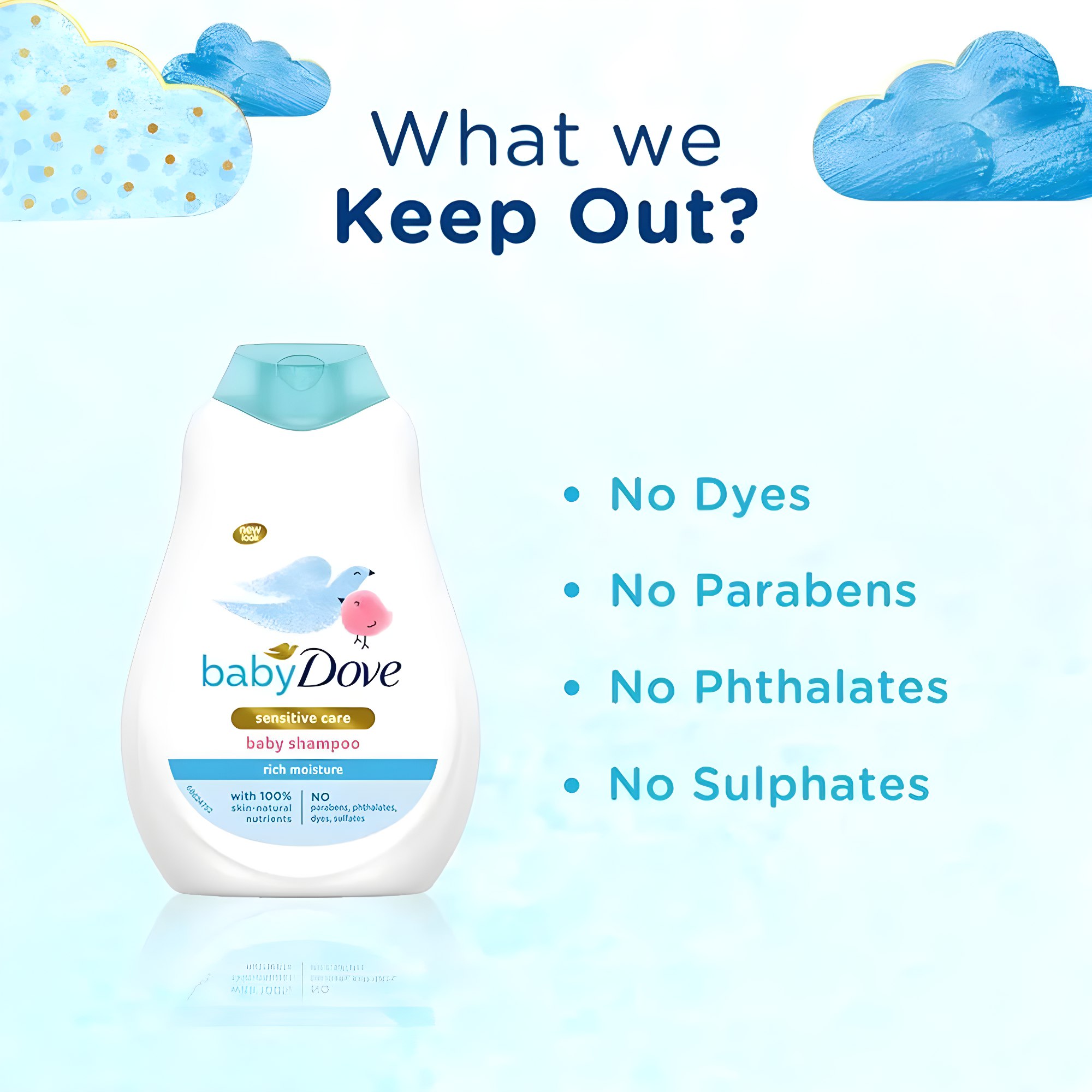 شامپو Baby Dove Sensitive Skin Care Rich Moisture با فرمول فوقالعاده ملایم و تغذیهکننده، بهطور خاص برای مراقبت از مو و پوست سر حساس نوزادان طراحی شده است 👶💧. این شامپو با ترکیبی از ۱۰۰٪ مواد مغذی طبیعی پوست، بدون سولفات (SLES) و بدون رنگ یا عطر مصنوعی، موهای لطیف کودک را بهآرامی تمیز کرده و رطوبت طبیعی پوست سر را حفظ میکند 🌿🩵. فرمول هیپوآلرژنیک آن باعث میشود حتی برای نوزادان تازهمتولد یا دارای پوست بسیار حساس نیز کاملاً ایمن باشد. ✨ دارای تأییدیه متخصصان اطفال و پوست، فاقد ترکیبات مضر و با PH متعادل برای استفاده روزانه. 🇵🇱 ساخت لهستان – تحت لیسانس انگلستان 🇬🇧. حجم: ۴۰۰ میلیلیتر.