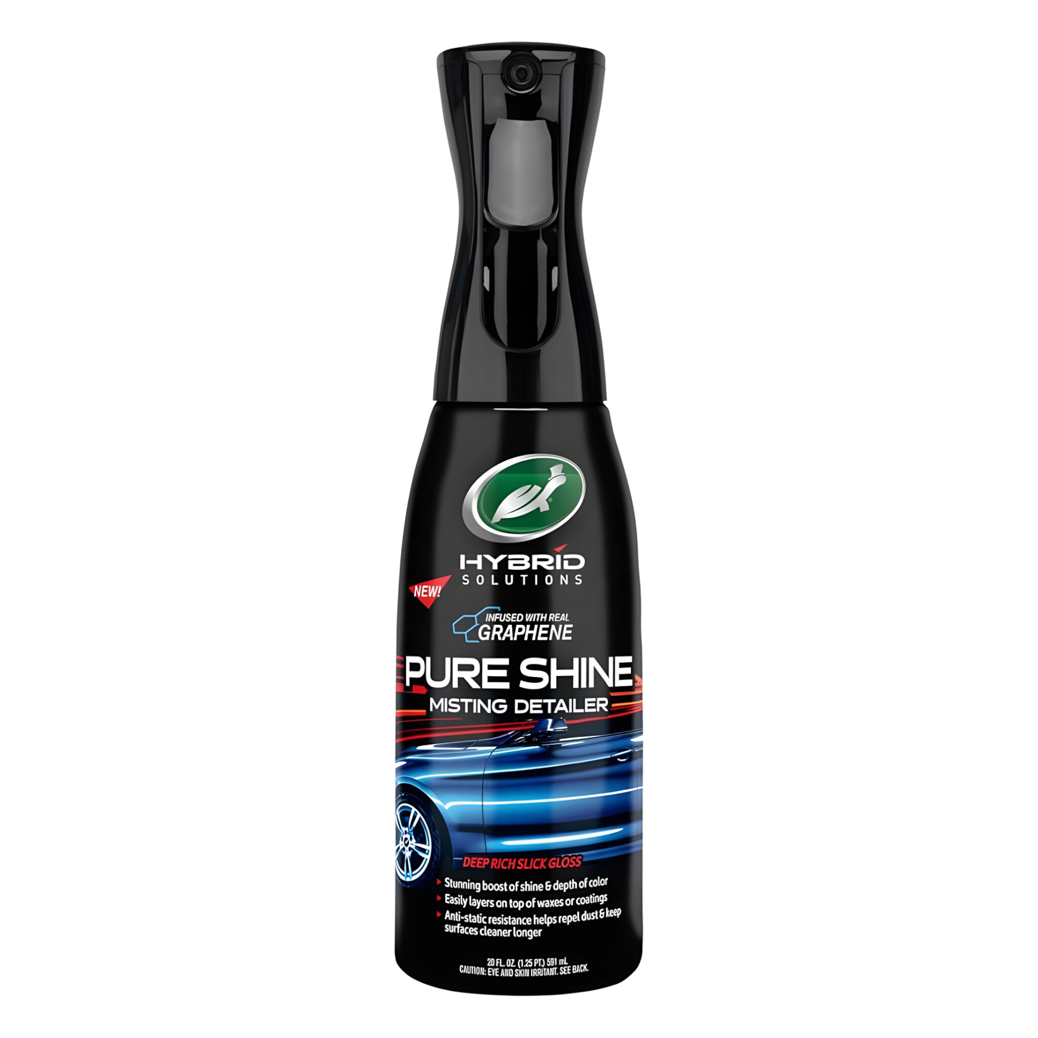 اسپری براقکننده و محافظ Turtle Wax Hybrid Solutions Pure Shine یکی از جدیدترین و پیشرفتهترین محصولات برند آمریکایی Turtle Wax است که با فناوری واقعی گرافن (Graphene) طراحی شده تا سطح بدنه خودرو را در برابر عوامل محیطی محافظت کرده و جلوهای براق و آینهای به آن ببخشد. این محصول با ترکیب خاصی از پلیمرهای محافظ و ذرات گرافن، لایهای فوقالعاده مقاوم و ضدالکتریسیته روی رنگ ایجاد میکند که علاوه بر جلوگیری از جذب گرد و غبار، باعث لغزش آسان آب و آلودگیها از روی بدنه میشود.